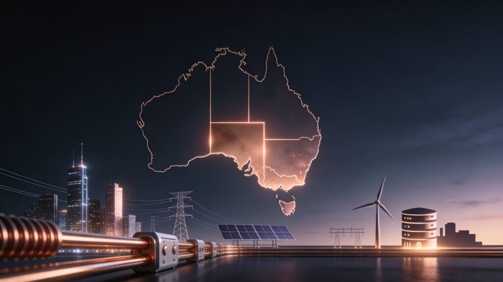 Copper is consolidating below recent record highs but remains up strongly year‑on‑year, underpinned by structural supply constraints and accelerating electrification demand. Australia is positioned as a key beneficiary, with production expected to recover from 2026 and major investment flowing into South Australian and NSW copper provinces.